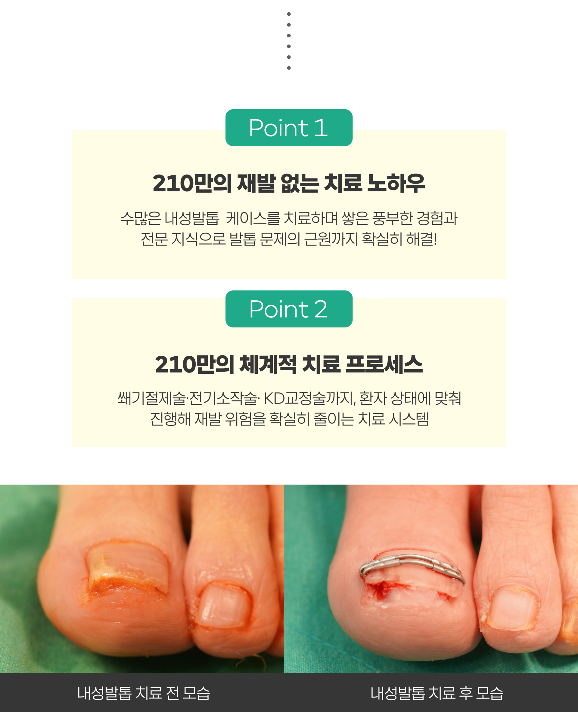 ✅ 발끝에 찌르는 듯한 통증 | ✅ 고름· 진물이 나오기 시작 |