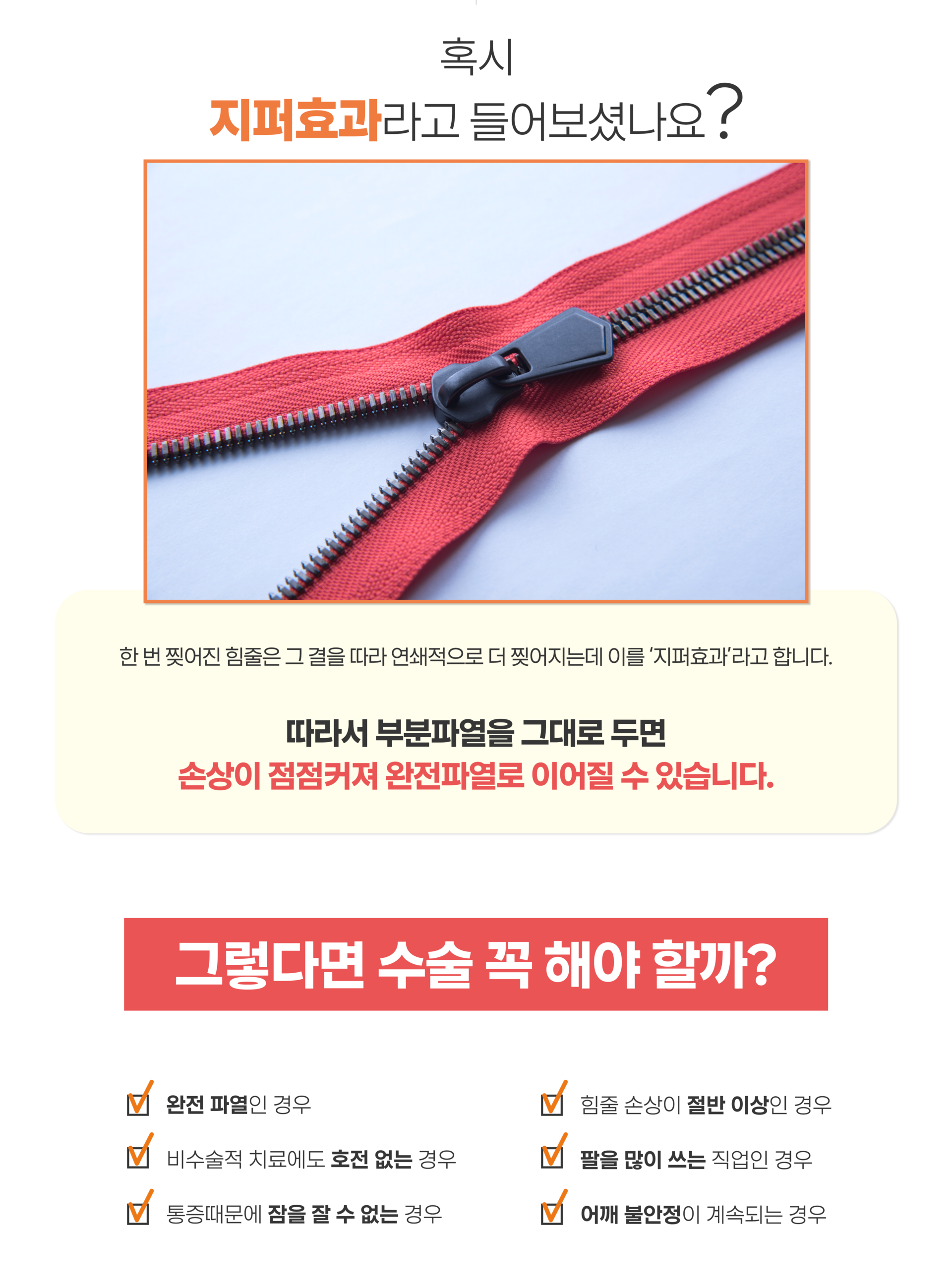 힘줄 일부만 살짝 찢어진 상태 | 힘줄이 완전히 끊어진 상태 |