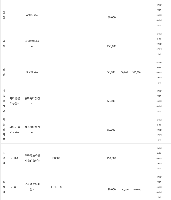 검진 | 성장판 검사 | 50,000 | 50,000 | 300,000 | 급여 인정기준 이외 실시시 비급여 | ||||||