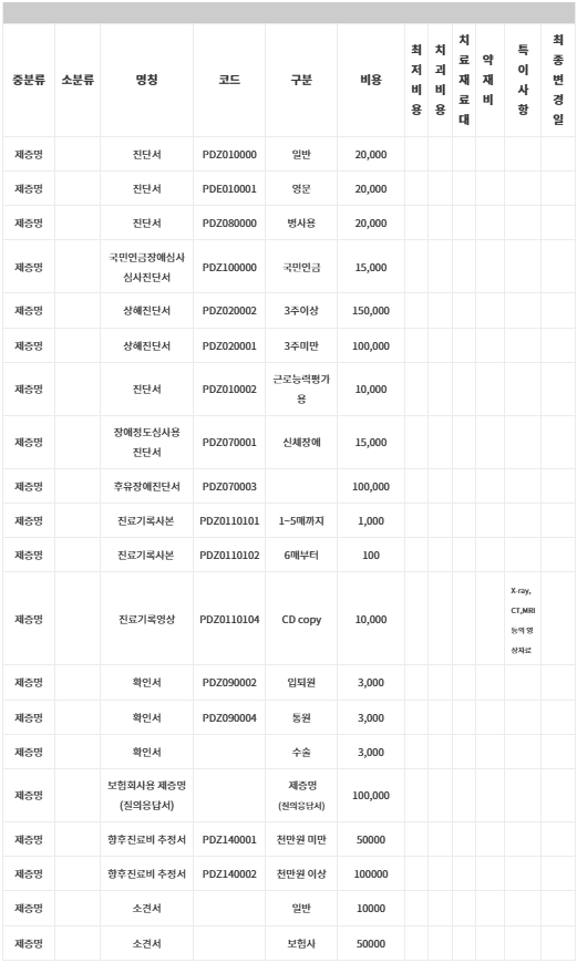 제증명 | 진단서 | PDZ010000 | 일반 | 20,000 | |||||||